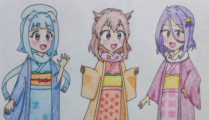 サンタさんな #新宿3人娘 描きましたー!(*≧∇≦)ノ🐈️ 「メリークリスマス!🎉✨🎁✨」 #クリスマスイラスト #新宿西口たん #新東たん #しんじゅくたん #ビッカメ娘 ( #ナイセン ) #ビッカメ娘を描き隊 #ファンアート #色鉛筆 #絵描きさんと繋がりたい