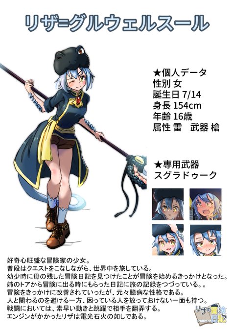 うちのオリジナル創作について、紹介用にまとめました。 今後も変化や新たな設定が追加されると思いますので、お楽しみに!! ・主人公について ・人物相関図 ・世界について ・魔法について #リザの冒険日記 #新年になったのでフォロワーさんに自己紹介しようぜ