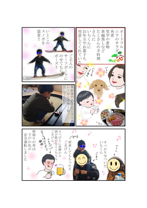このお正月も、他県にいる妹は帰省せず、残念ながら会えなかった。一方、同じ市内のいとこの家で初めての新年会開催!息子は、大はしゃぎ。人との繋がり、あったかいな〜。 ↓↓↓ #新年会 #育児漫画 #漫画が読めるハッシュタグ