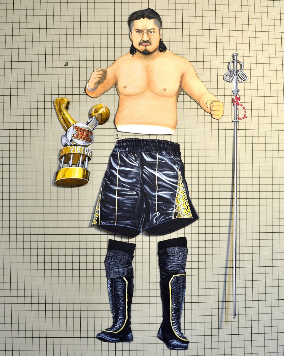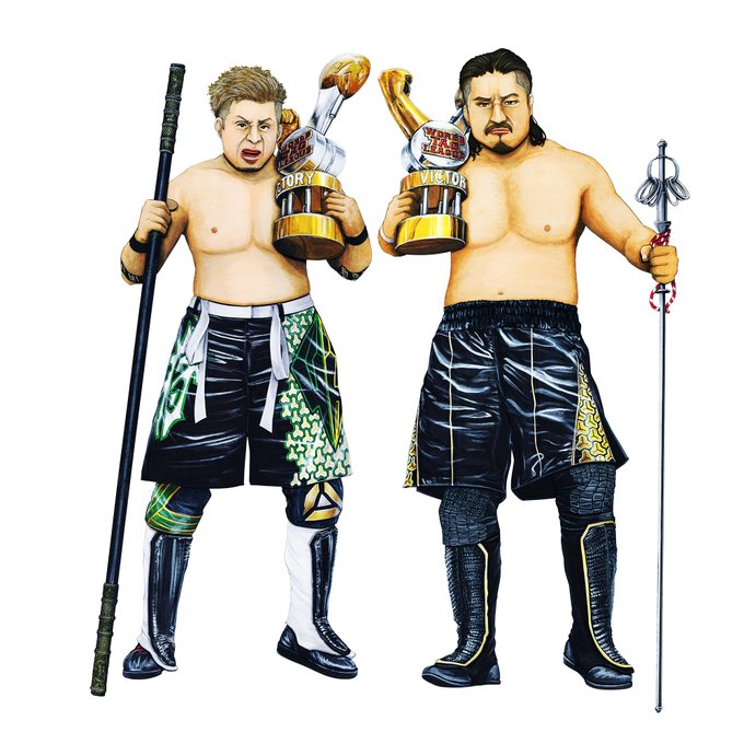 “毘沙門” 2人並べるとこんな感じ。 #後藤洋央紀 #yoshihashi #新日本プロレス #njpw #毘沙門 #ゴっちゃん #ヨっちゃん #illustration #copic #copicmarkers #切り絵 #イラスト #コピック