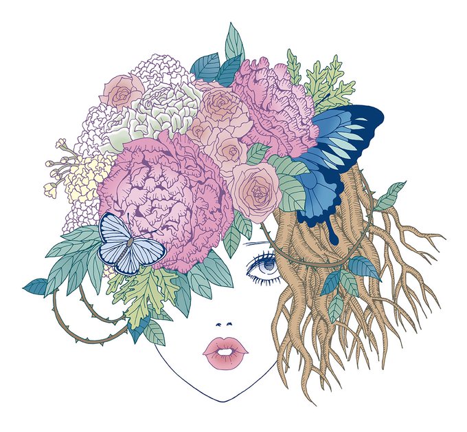 2人展に出した作品⑪花面病 2020年の幡ヶ谷仮面展にも出した作品。さまざまな花や植物に侵食され、自分の元の姿がわからなくなってしまった女の顔。 #新春芸術祭2023 #イラスト #イラスト好きな人と繋がりたい #冬の創作クラスタフォロー祭り #新春私の作品広まれ祭り