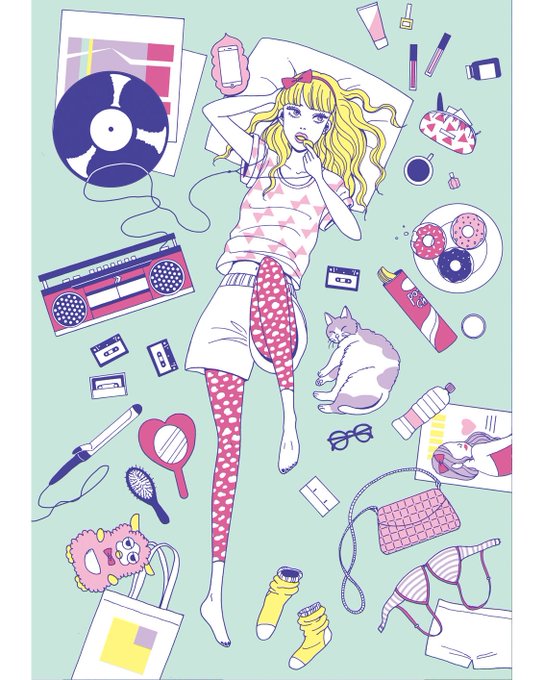 2人展に出した作品⑥C.O.Z.Y. Room ポップでファッション写真ぽい絵が描きたくて制作したような…。好きなものに囲まれてる怠惰な女子。裏テーマは「汚部屋とTシャツと私」。色がバツグンに気に入ってます♡ #新春芸術祭2023 #イラスト #冬の創作クラスタフォロー祭り #新春私の作品広まれ祭り