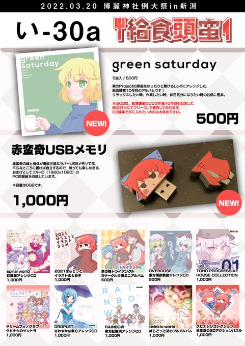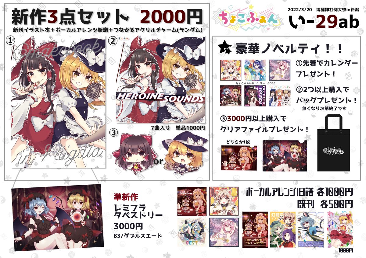 【#新潟例大祭 おしながき】 スペース:い-29ab「ちょこふぁん」 新譜試聴🎧youtu.be/K9Ozx75Tu_4 新作セット通販(残り少なめ) subachoco.booth.pm/items/3721404 新譜単品🍈 melonbooks.co.jp/detail/detail.… 折角の新潟遠征なのでノベルティ豪華にしました! 「ノベルティ下さい!」でよろすば!!!🍫🌟