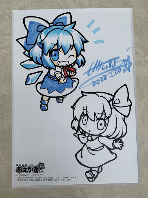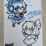 【特別ゲスト④】 なんと生放送でZUNさんに塗ってもらいました! さすが神主普通には塗らない!まさかの赤チルノです。足元からのエフェクトの流れで右上空間を埋めているのも作品としての完成度が高い!感激しました~!ありがとうございます!!!! #ガタケット #新潟例大祭 #幻想郷のおえかき道場