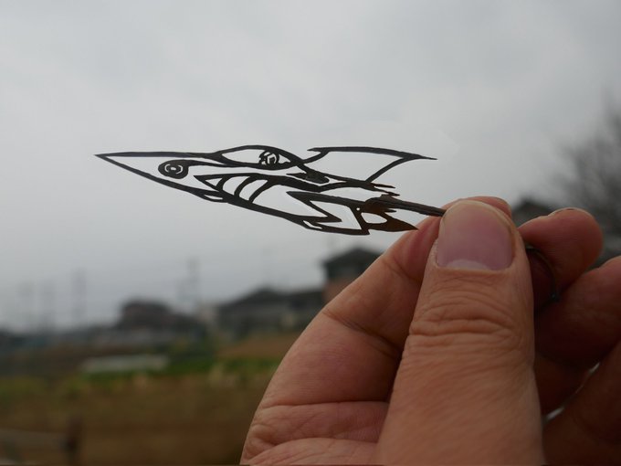『新造人間キャシャーン』のブレンダージェットを切り絵にしました。 小学2年生の頃、キャシャーンにはまった仲間とブレンダータンクごっこをしたのも懐かしい想い出です🐺 #葉っぱアート #新造人間キャシャーン #ブレンダー #ブレンダージェット #加藤昭二 #タツノコプロ