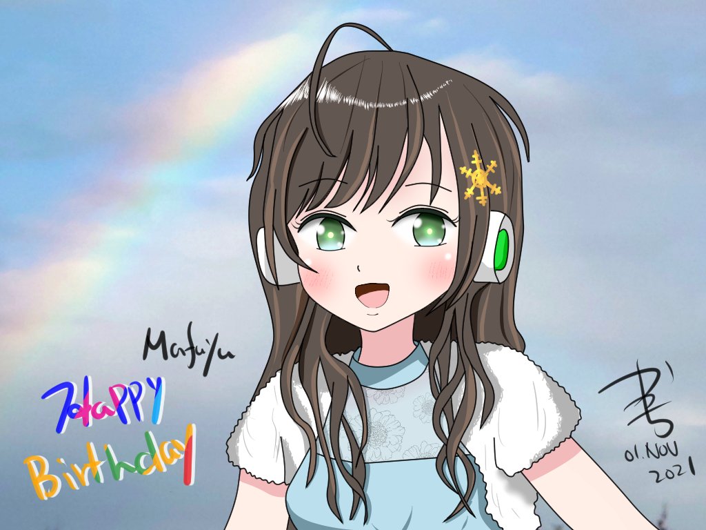 まふゆ『マスター、もういいって言ったのに~、恥ずかしい・・』 いや、かわいいまふゆちゃんは是非描かねばと思って突貫で描いたんです。ほぼワンドロでごめんだけど まふゆ『お祝いしてくれるの、嬉しいです』 まふゆちゃんには虹がとっても似合う気がしました。 #駅メモファンアート #新鶴まふゆ