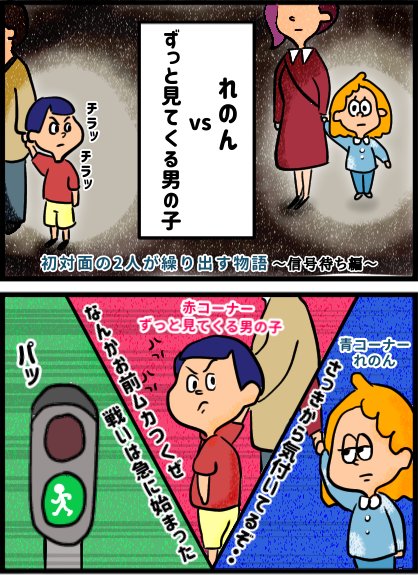 「子供同士の本気の戦い。」 最新話はブログで毎日更新中🤗 #マンガが読めるハッシュタグ #漫画がよめるハッシュタグ #絵日記 #本気 #信号待ち #イラスト #illumination #旅立ちれのん