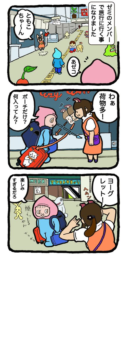 猫ミミ!猫背の?ネコ・ゼコちゃん☆』 〜3コマがちょうどいいマンガ〜 NO.065 【楽しみすぎて待ち合わせがこれです】 #漫画が読めるハッシュタグ #マンガが読めるハッシュタグ #猫背女子 #旅行あるある #旅行