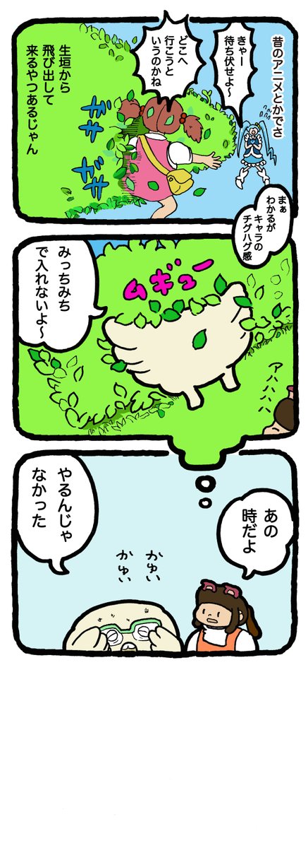 猫ミミ!猫背の?ネコ・ゼコちゃん☆』 〜3コマがちょうどいいマンガ〜 NO.071 【はしゃいだ結果これです】 #漫画が読めるハッシュタグ #マンガが読めるハッシュタグ #猫背女子 #旅行あるある #旅行 #フラワーセンター #生垣から飛び出してくるキャラクター