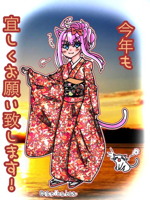 🌅【276日目】🌅 🎍今年も宜しくお願い致します!🎍 #イラスト #アイビスペイント #絵柄が好みって人にフォローされたい #絵描きさんと繋がりたい #イラスト好きな人と繋がりたい #365日毎日イラストチャレンジ #猫耳 #2023NewYear #日の出 #みんなで楽しむTwitter展覧会