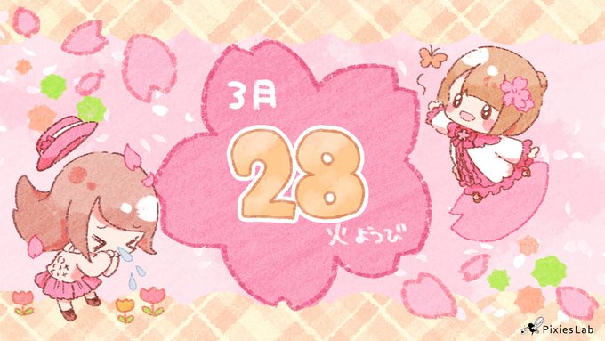 \ 2023.03.27 / おはようございます! 今日は #さくらの日 🌸 「3×9(さくら)=27」の語呂合わせと、桜が咲き出してくるからみたいです☆ #日めくりカレンダー #イラスト #ぴよっこ腐女子のふじょみちゃん
