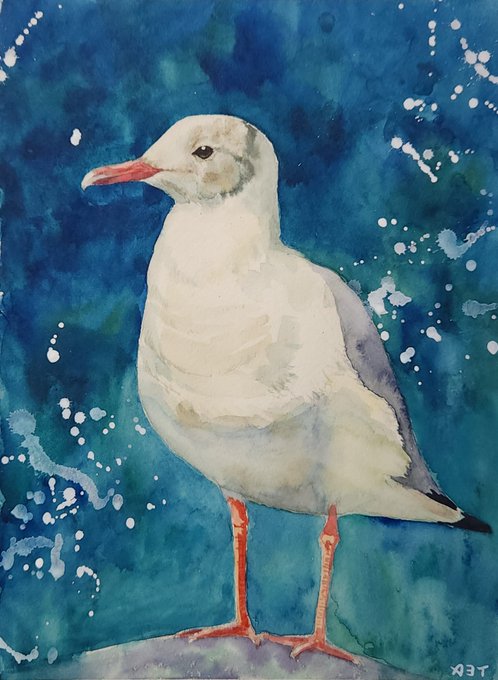 I did a watercolor of the black-headed gull that I saw in Ueno Park. 上野公園で見たユリカモメを水彩で。 #日めくり水彩画 #watercolor #watercolour #watercolorpainting #watercolourpainting #水彩画 #透明水彩 #ゴールデンウィークSNS展覧会2023
