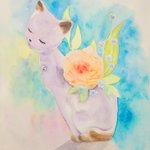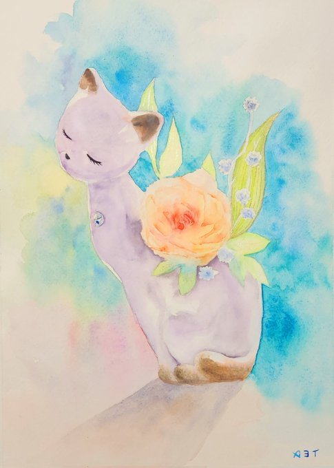 cat-shaped vase 猫の花瓶 先日ランチをしたお店に飾ってあった花瓶を描いてみた。 #日めくり水彩画 #watercolor #watercolour #watercolorpainting #watercolourpainting #水彩画 #透明水彩 #顔彩