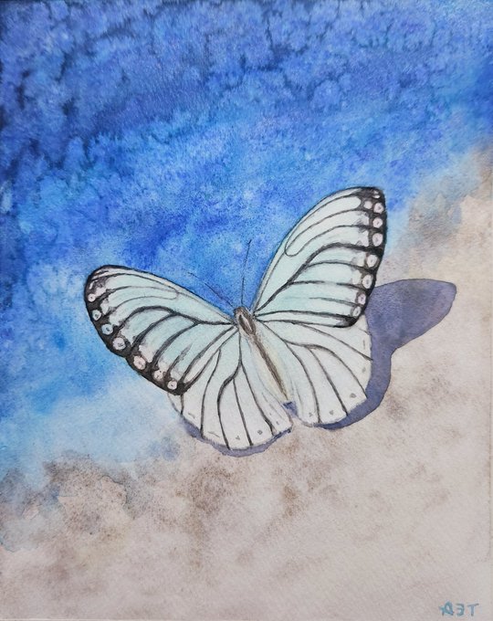 A water's edge butterfly 水辺の蝶 #日めくり水彩画 #watercolour #watercolorpainting #watercolourpainting #水彩画 #透明水彩 #顔彩