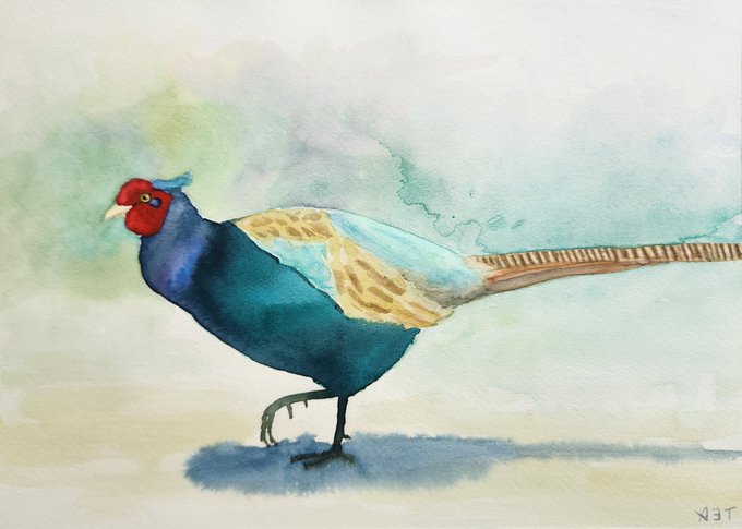Pheasant キジ 透明水彩で描きました。 #日めくり水彩画 #watercolor #watercolour #watercolorpainting #watercolourpainting #水彩画 #透明水彩