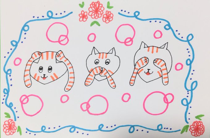 おはようございます!! #日光の日 三猿を真似する3人!!🤭 固ツイにてプレゼント企画実施中!! 今日も素敵な火曜日を〜🤗 #絵描きさんと繋がりたい #イラスト好きさんと繋がりたい #みんなで楽しむTwitter展覧会 #イラスト