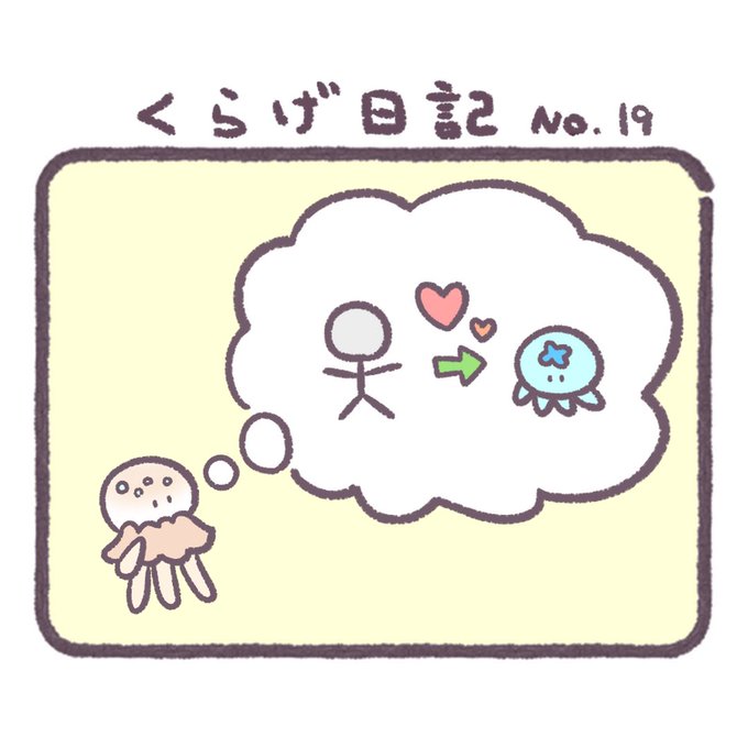 『くらげ日記』19話目✨ そうだ!人間をメロメロにするんだ!! #海月 #jellyfish #イラスト #illustration #4コマ #漫画が読めるハッシュタグ #日夜研究開発は続く