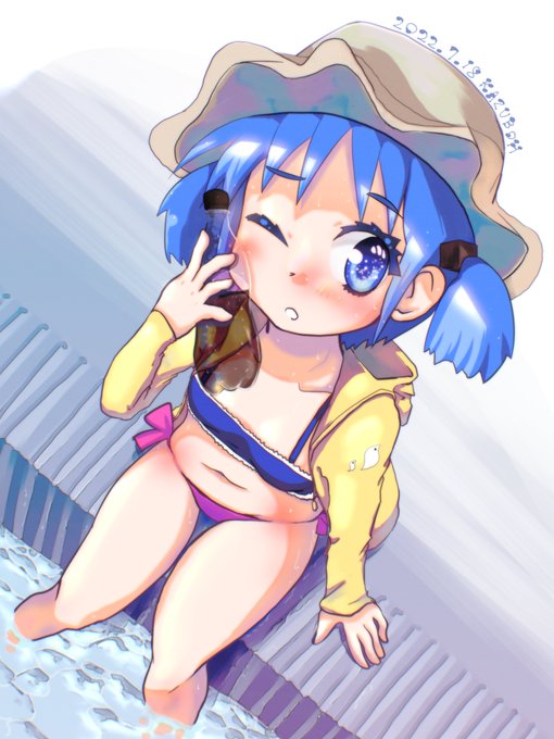 モチっとしたちゃんみお描いた。 部屋着の要素を水着に取り込んでたが、帽子のせいか東方のにとりっぽくなった(;^ω^) あの悲劇から今日で3年。合掌。 #PrayForKyoani #日常垢さんとつながりたい #長野原みお #水着 #nichijou #日常 #絵描きさんと繋がりたい #イラスト好きさんと繋がりたい