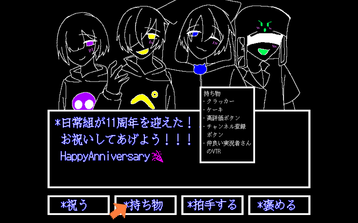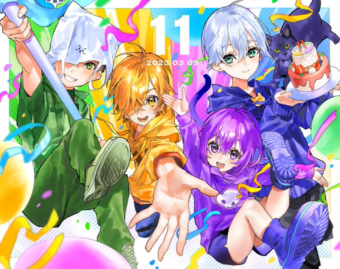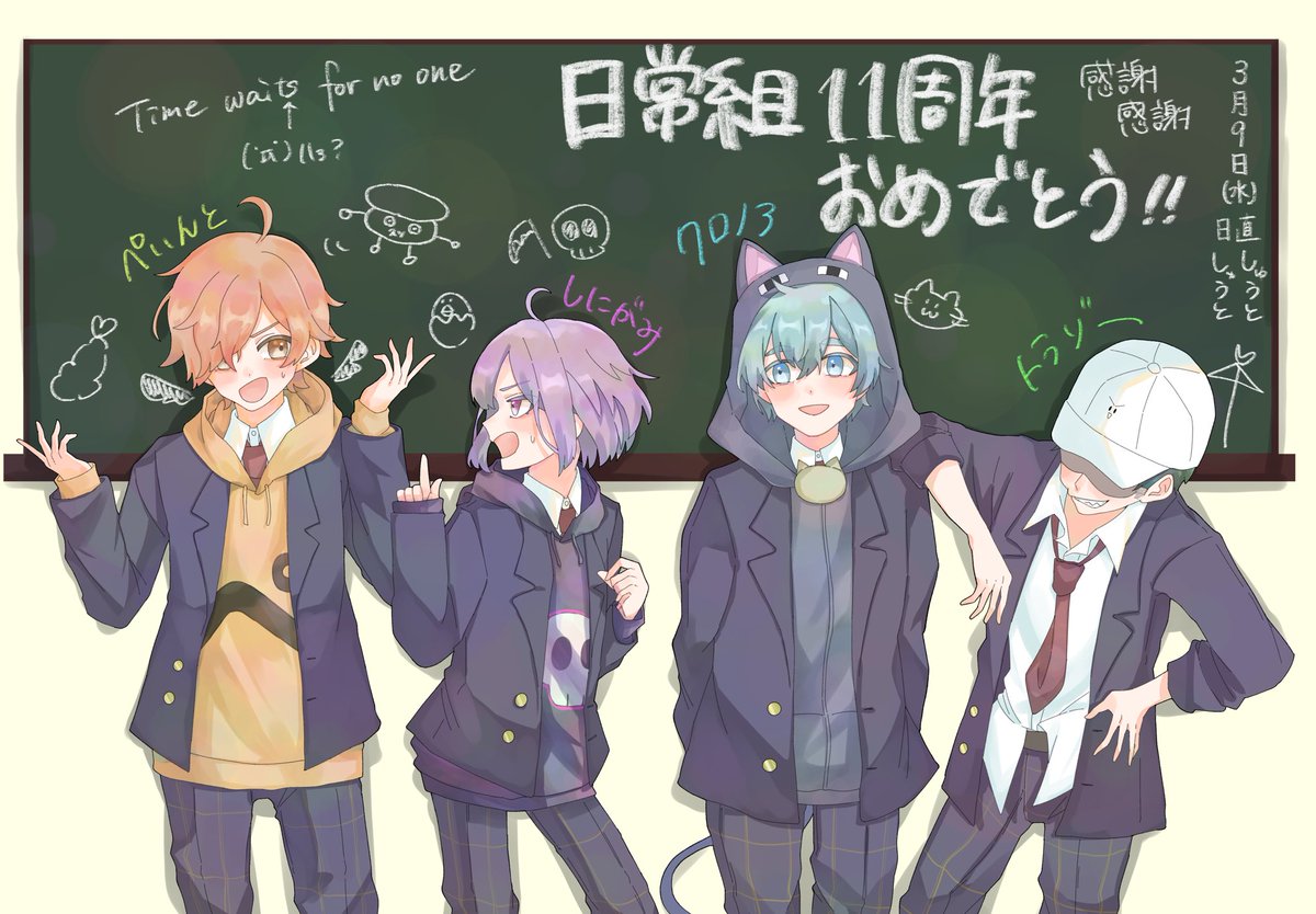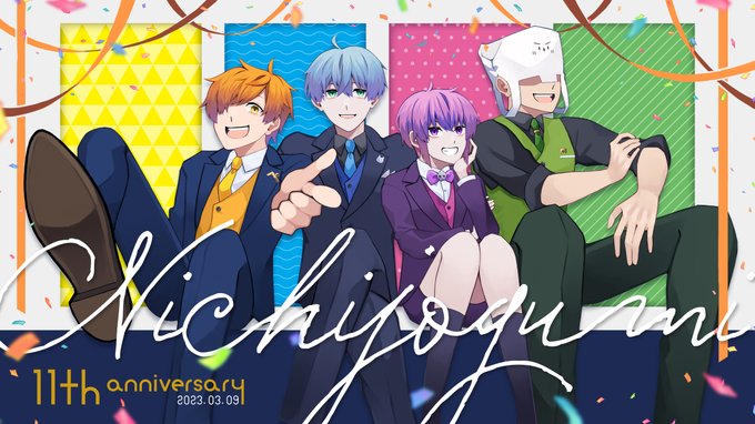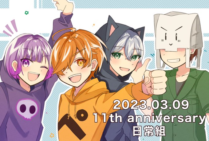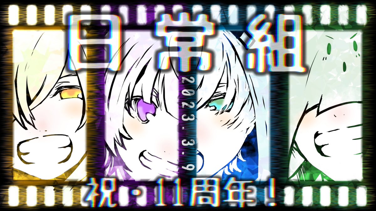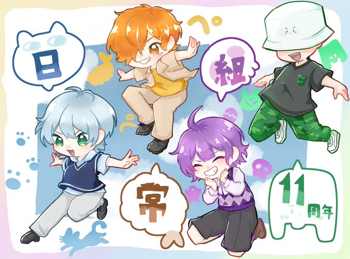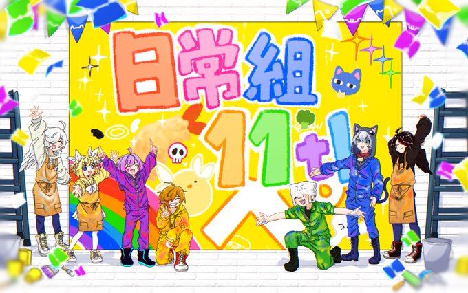 11周ねぇん!!! ぅおめでとおぉぉぉぉぉう!ゴザイマス これからも無理せず全力でゲーム楽しんでくださぁい! にちじょーてんの衣装初描きだぁ! めちゃかわっ! #日常組11周年 #日常組11thAnniversary #マイ日pic
