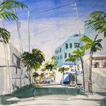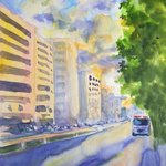 「裏通り」水彩画 WIRGMANという紙に描いてみた。慣れないせいかあつかいが難しかった。 #アナログ #art #illustration #絵描きさんと繋がりたい #芸術の輪 #みんなで楽しむTwitter展覧会 #素朴画 #絵のある暮らし #アートのある暮らし #日常風景 #東京散歩 #水彩画 #透明水彩 #watercolor #風景画