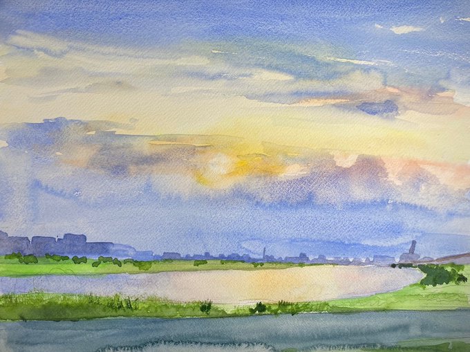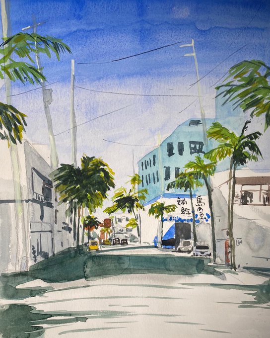 小さめのスケッチ。世田谷公園にて。 #夏の創作クラスタフォロー祭り #アナログ #art #illustration #絵描きさんと繋がりたい #芸術の輪 #みんなで楽しむTwitter展覧会 #素朴画 #絵のある暮らし #アートのある暮らし #日常風景 #東京散歩 #水彩画 #透明水彩 #watercolor #風景画