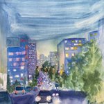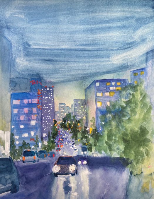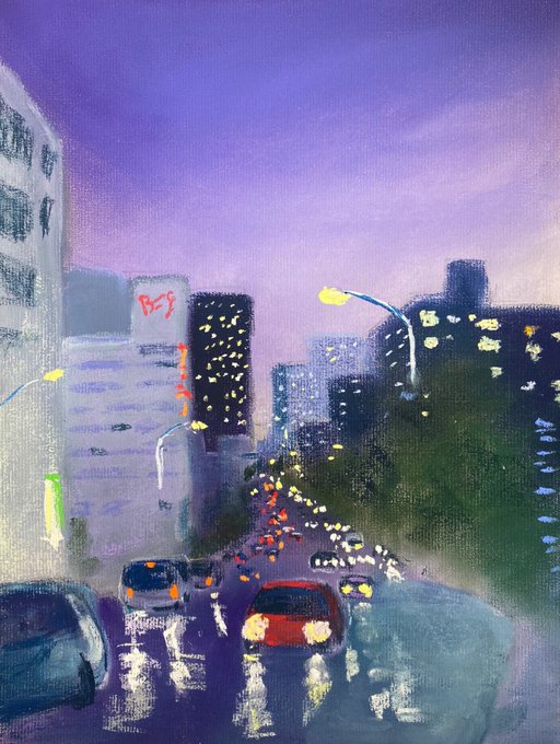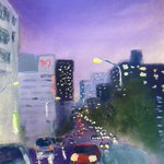 「雨の夜」パステル画 こないだのと同じ場所ですが別の日を描いた新作です。#夏の創作クラスタフォロー祭り #アナログ #art #illustration #絵描きさんと繋がりたい #芸術の輪 #みんなで楽しむTwitter展覧会 #日常風景 #東京散歩 #水彩画 #透明水彩 #watercolor #風景画 #パステル #パステル画
