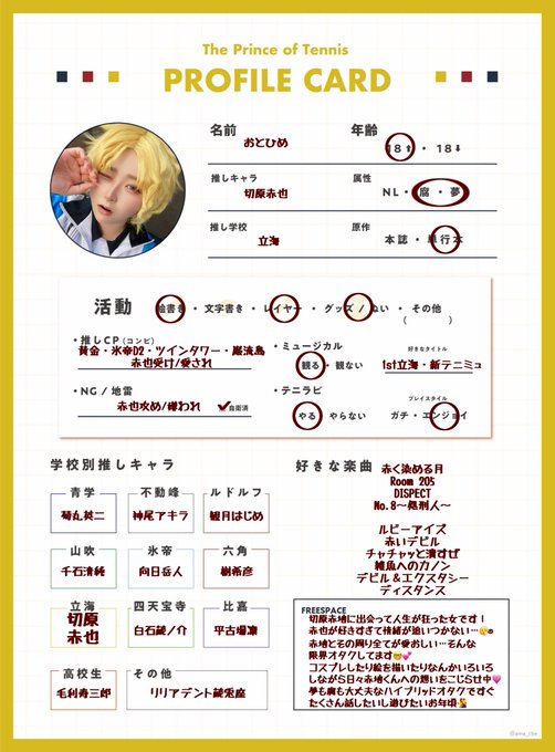 初めまして!瀬野あかりです!!!🐰🙌 地雷なし!なんでもあり!絵も描く、文字も書く、コスプレする! 幸村精市の女、木手永四郎と樹希彦のオタクです。 よろしくお願い致します🐰✨✨✨✨ #日曜日突然のテニプリテニミュフォロー祭 #フォロワーさんのフォロワーさんと繋がりたい