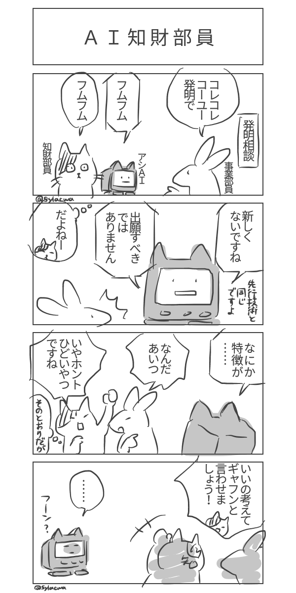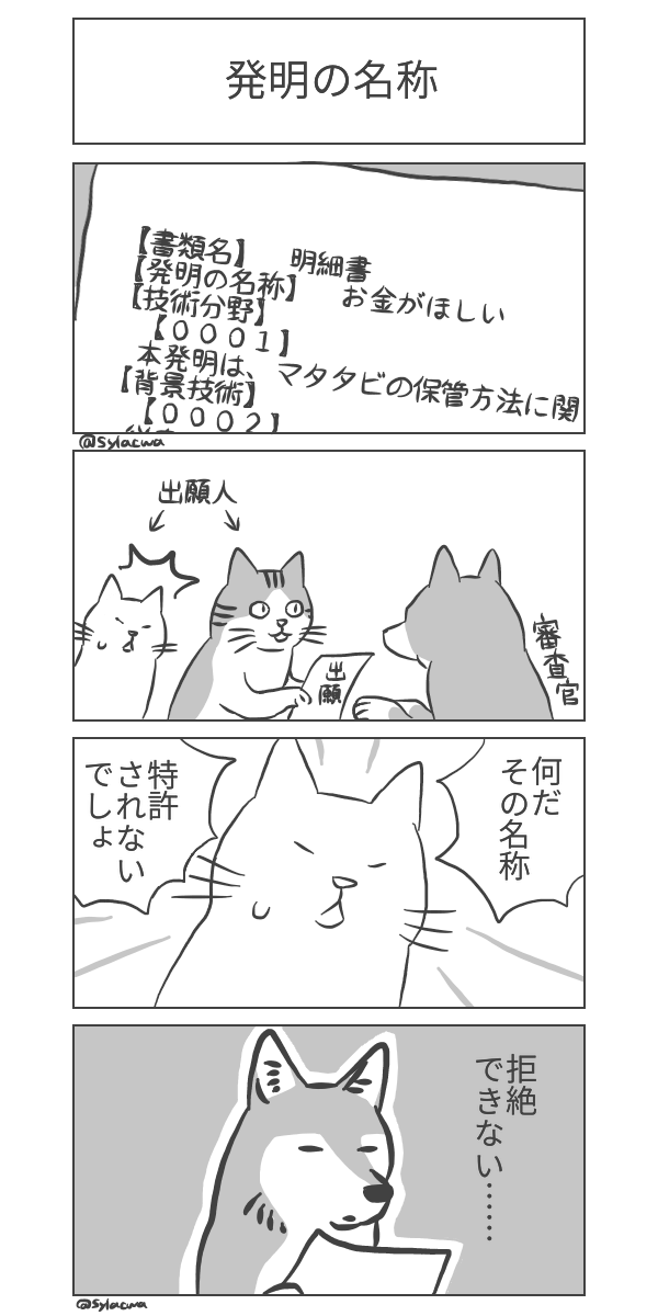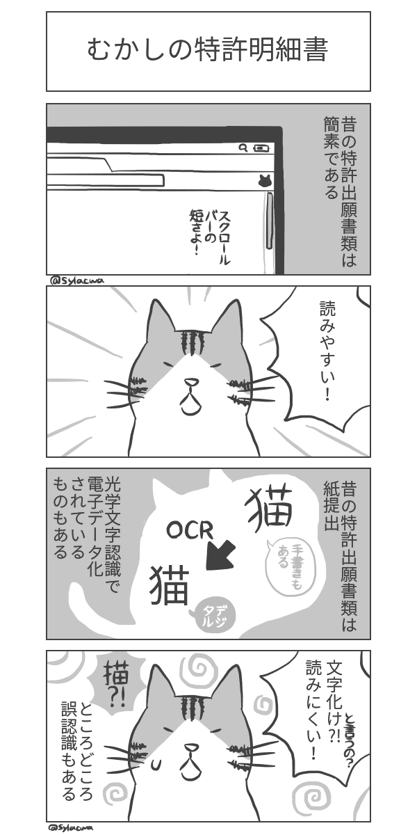 #日曜知財劇場 2022年41本め修正版 1コマ目を修正しましたぽん😸 しかし「スクロールバーが長い」より「スクロール(の余地)が短い」の方がわかりやすいというご意見も。むむむ?! #4コマ漫画 #知財マンガ #漫画が読めるハッシュタグ #特許 twitter.com/sylacwa/stat…