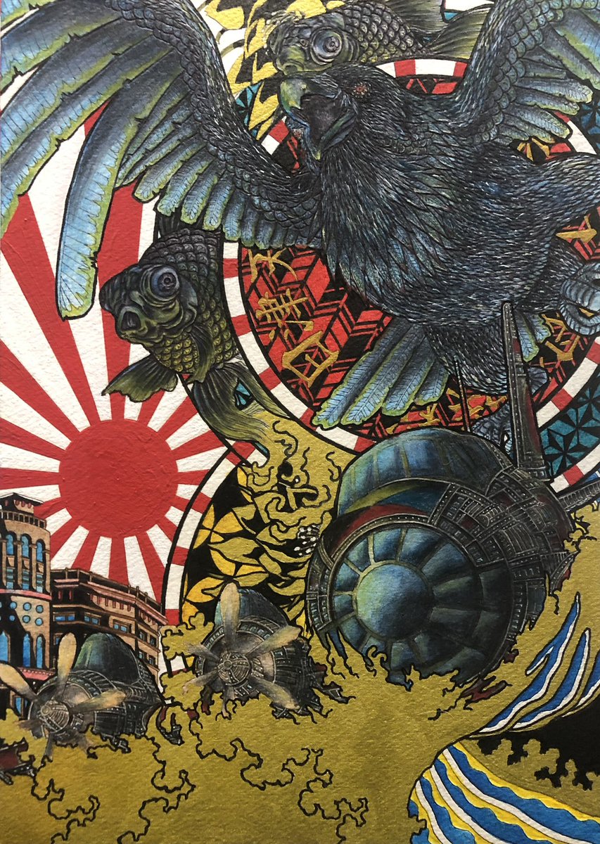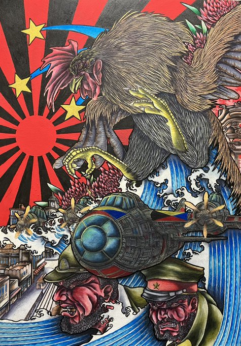 完成しました🎌✨✨ 金鵄の背後で輝く旭日は光を放ち戰を勝利に導く。 日本の未来は明るい!!明るくするのは今を生きる僕達だと信じて制作をしました!!!✨✨✨ #旭日旗 #日本を取り戻す #いつか超つよつよ作家になるので今のうちに推しませんか