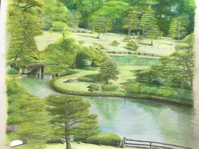 makuro7.com #絵 水彩画 おすすめ 風景 #水彩画 おすすめ 風景 #六義園 作品50 ブログ更新済。 関連URLも貼っております。是非ブログ makuro7.comを見てくださ~い #六義園 #東京都文京区 #日本庭園
