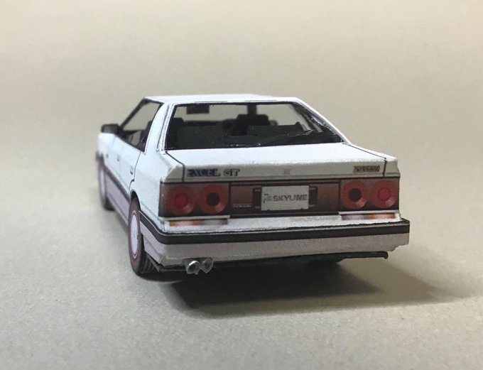 トミーテックさんで1/64の7thパサージュツインカムを予定しているらしいですが、一足お先にエクセルツインカムを1/64で作っていた自分。 #高速有鉛デラックス #工作所以 #日産スカイライン #ペーパークラフト #papercraft