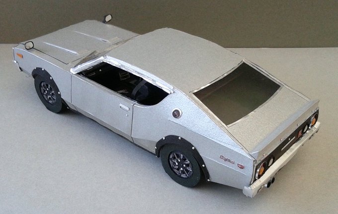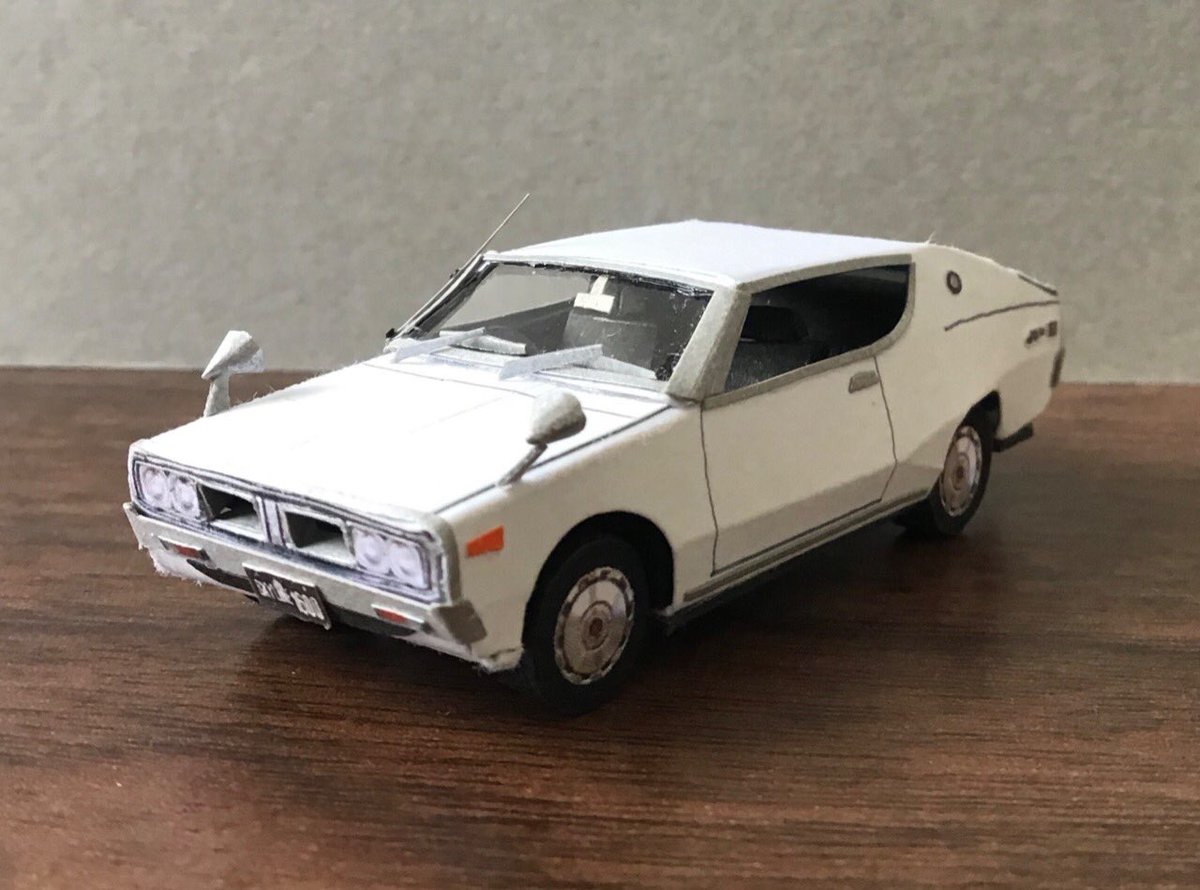 フルスクラッチのペーパークラフト。1/64スケールの1975年式日産スカイライン1800スポーティGL。自作ケンメリショートノーズ三部作完結編。 #ペーパークラフト #日産スカイライン #papercraft
