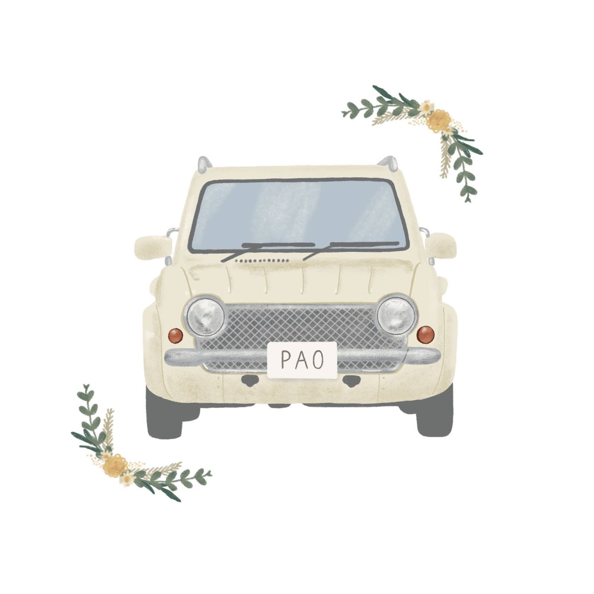 おはようございますニャン⁽⁽ ◟(∗ ˊωˋ ∗)◞ ⁾⁾ 本日も頑張って参りましょうにゃ! #猫好きさんと繋がりたい #車好きな人と繋がりたい #イラスト好きさんと繋がりたい #昭和 #80年代 #旧車 #日産パオ #絵描きさんと繋がりたい #パイクカー #浜田省吾
