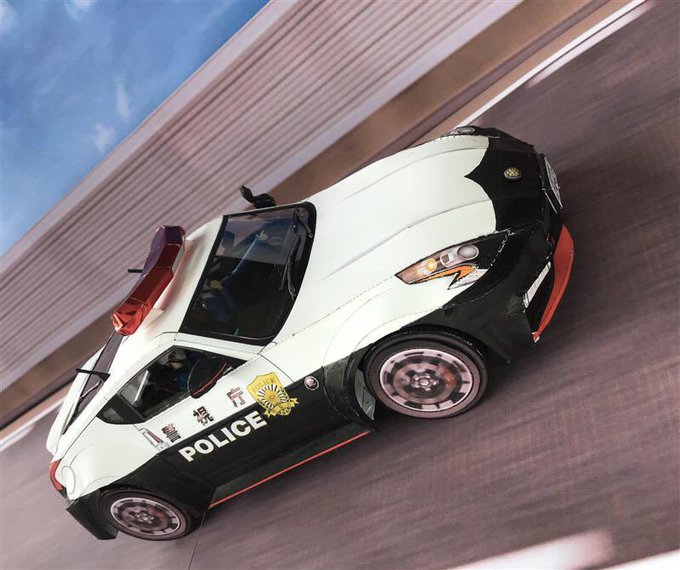 日産公式サイトの1/18フェアレディZ NISMOペーパークラフトを1/24高速隊パトカーに仕様替え。内装追加して女性隊員の自作フィギュア付。 #ペーパークラフト #papercraft #日産フェアレディZ #パトカー