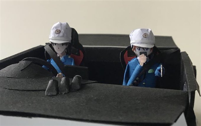 セミスクラッチペーパークラフト。1/24スケールZ34日産フェアレディZ NISMO高速隊パトカー仕様のフルスクラッチ女性隊員。 #ペーパークラフト #papercraft #日産フェアレディZ #パトカー