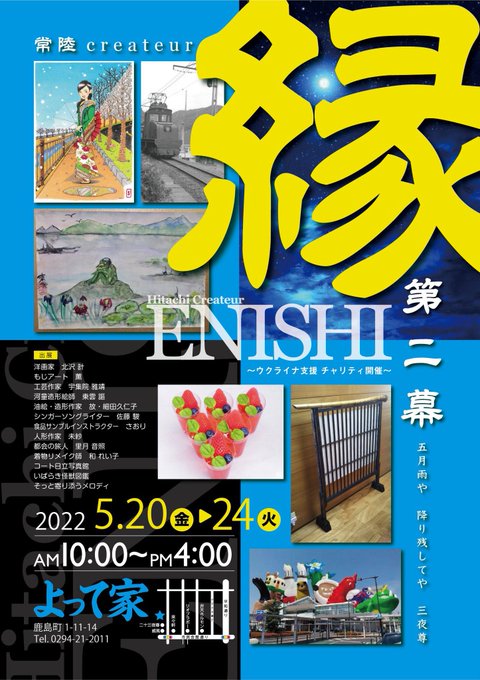 次回の縁。私は出展しないのですが、 描かせていただいた音太郎くんと笑子ちゃんが缶バッジで販売されます♪ 売上は今回も寄付。 茨城や妖怪愛のアピールもできる缶バッジ⁉︎😎 多様な作品展。 この機会に是非よって家FMへ♪ #日立市 twitter.com/joker00819728/…
