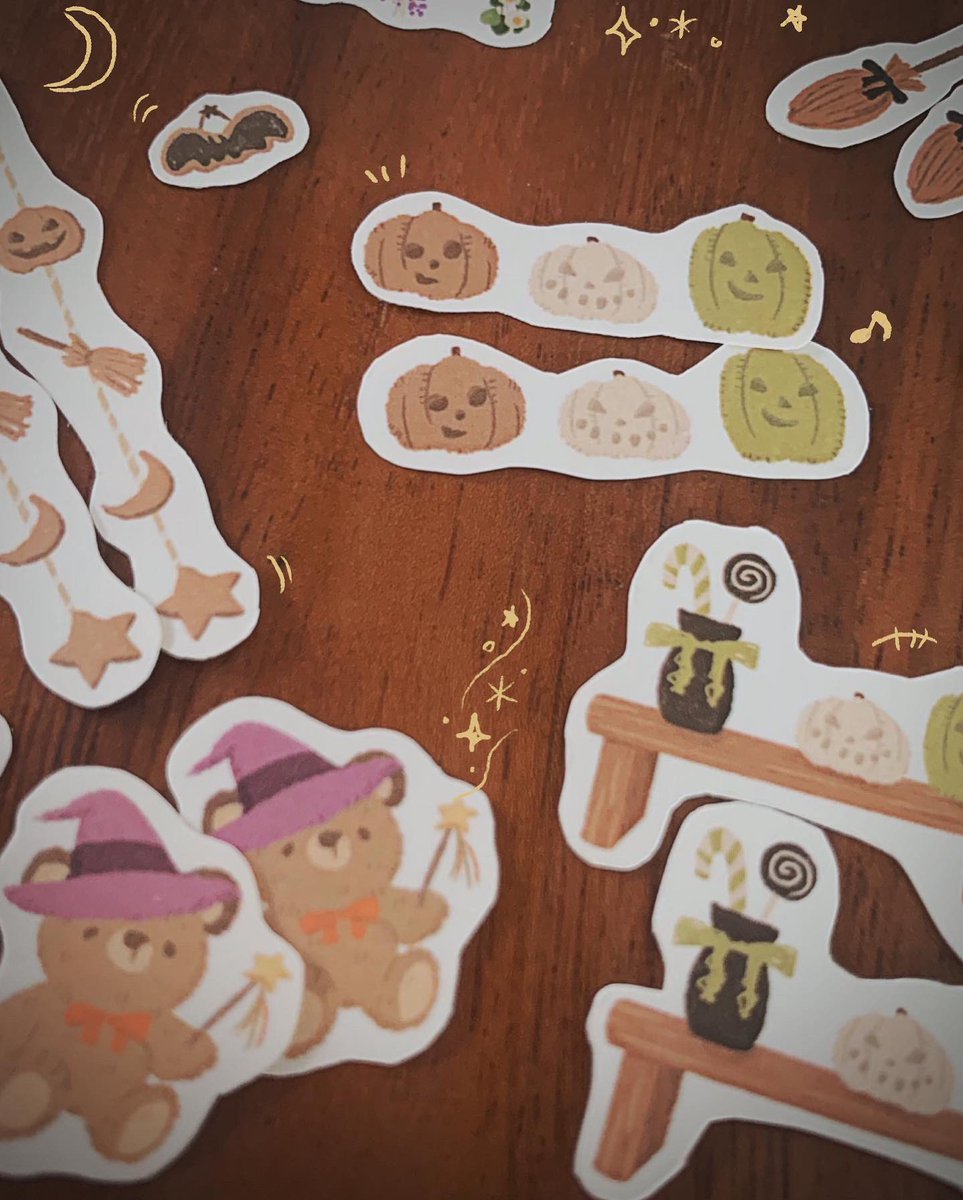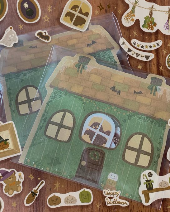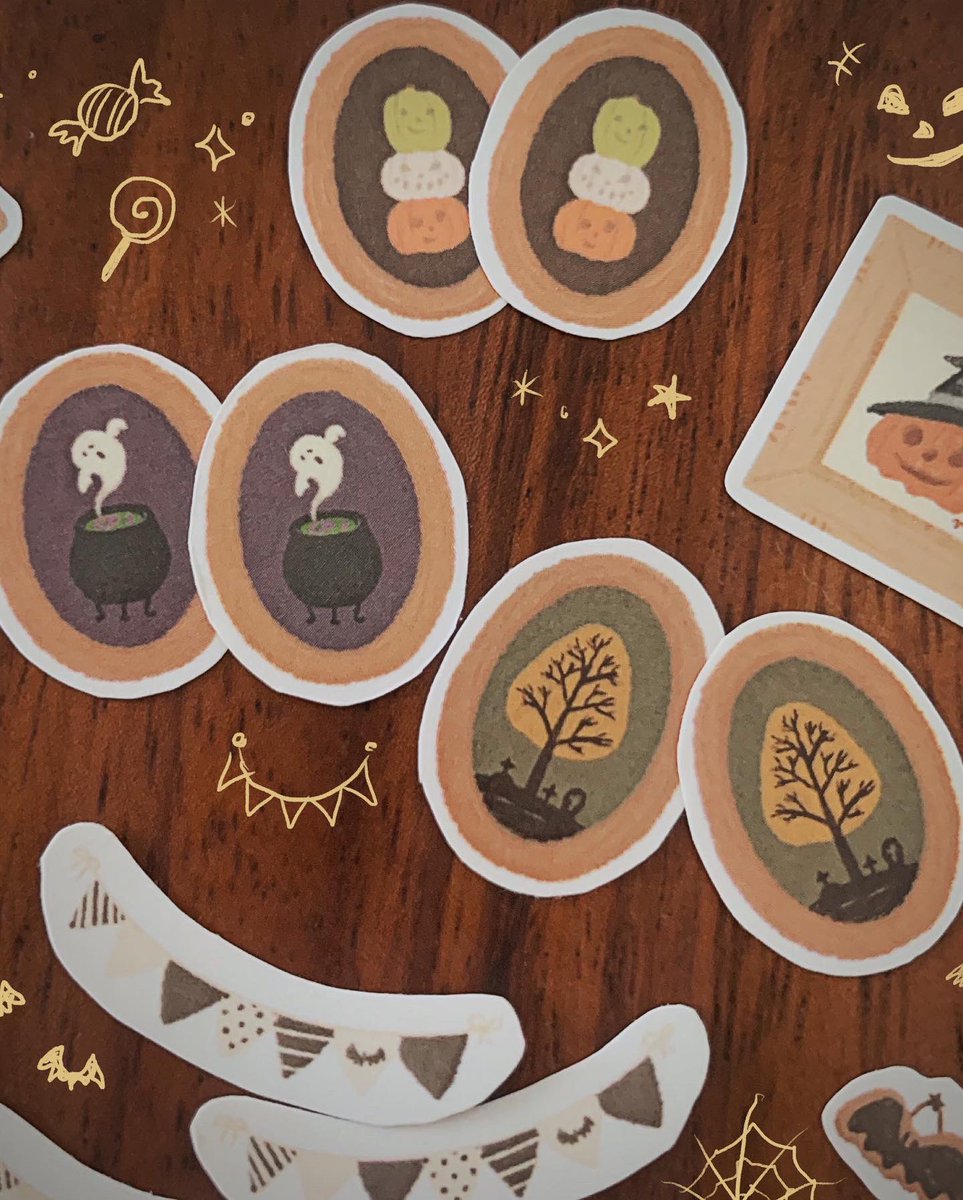 『ハロウィンの壁飾り』フレークシールminneで販売スタートしました🎃 パッケージもシールも全て描き下ろしのオリジナルイラストです★ もし良かったら遊びに来て下さい🪦🦇 minne.com/items/33786458 #minne #minneで販売中 #creema #シール #手帳デコ #日記デコ #イラスト #halloween