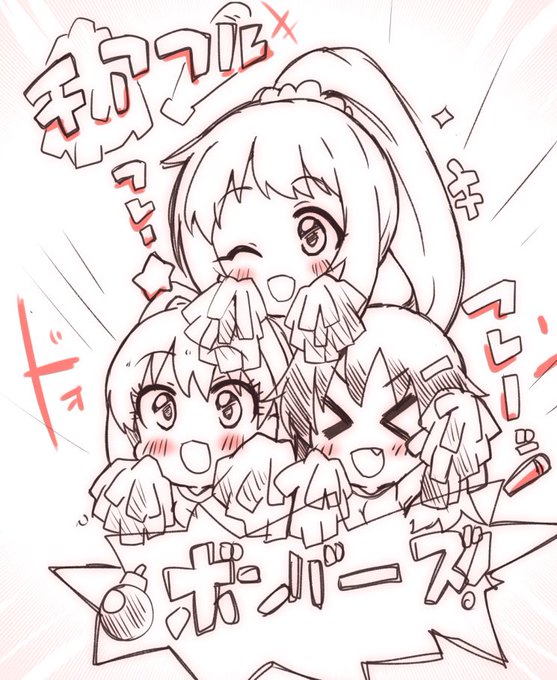 #チアボンにエール 前に描かせてもらったイラストで応援! チアボンのアツい曲聞かせてくれー! #若林智香へGo_for_it #日野茜をカレーなシンデレラに #姫川友紀を一等賞に #SfC予選D