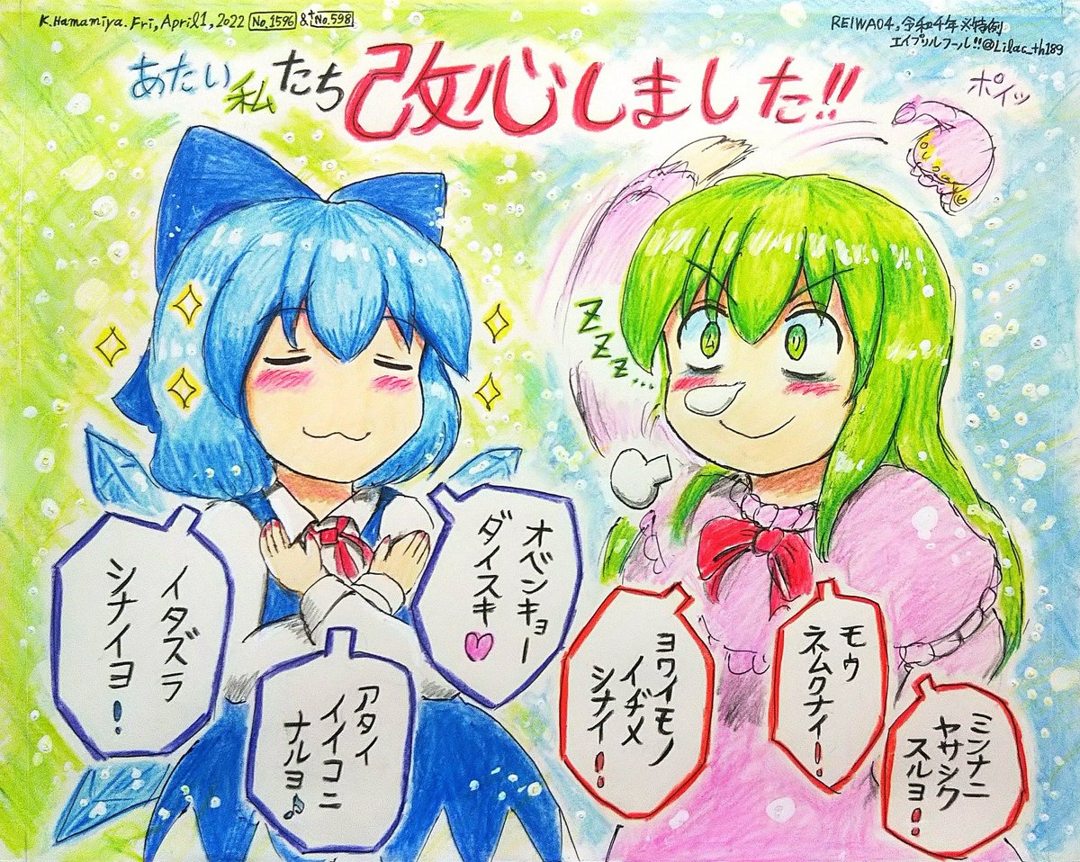 今日からあたいたち/私たち 良い子になります!!!!!!!!! #チルノ #深夜の真剣お絵描き60分一本勝負 (東方版・1596回目参加・お題フリー) #幽香 #旧作幽香 #東方版もうひとつの深夜の真剣お絵描き60分一本勝負 (もうひとつ版・598回目参加) (※11月26日お題) #エイプリルフール