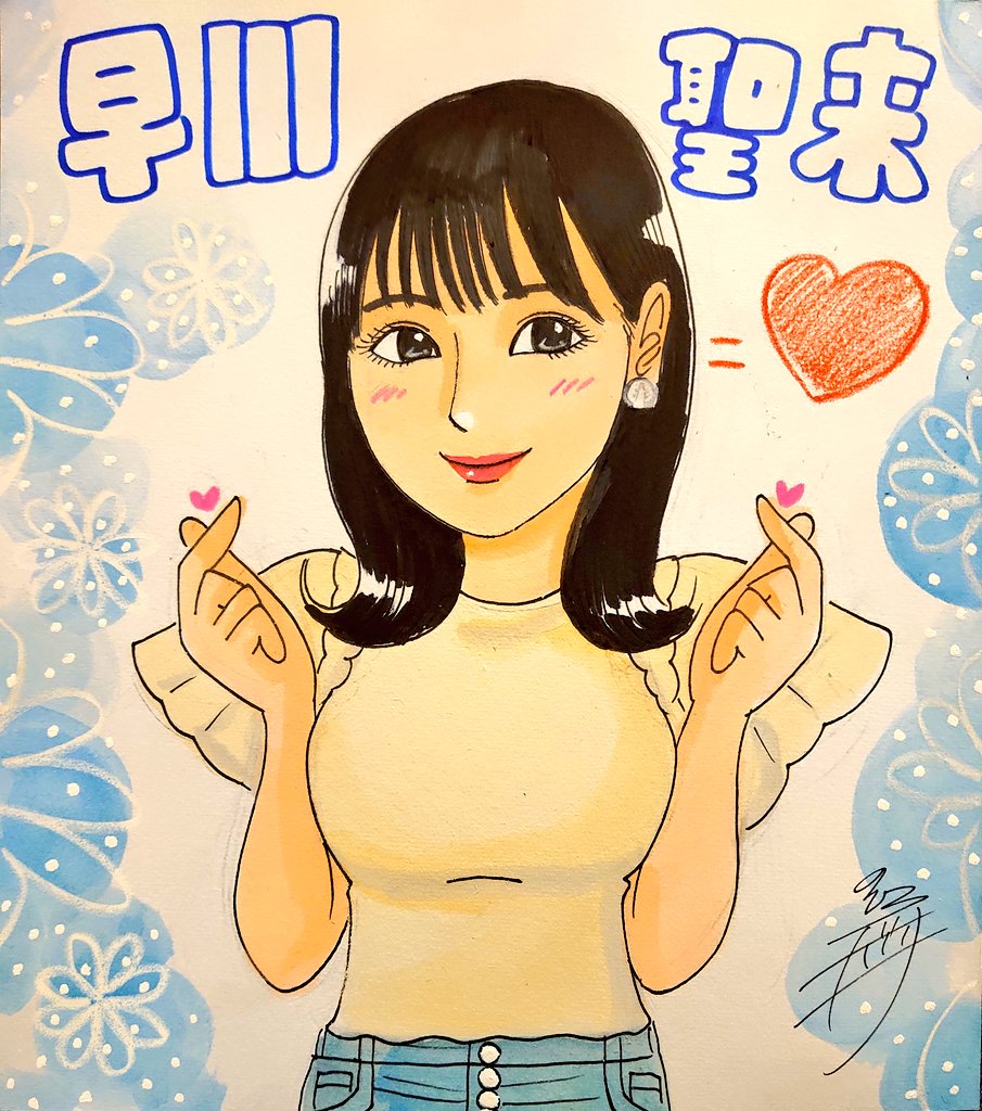 ドン! 今日描いた乃木坂ちゃんで〜す(*^^*) 💙写真集オフショットより💙 #似顔絵 #乃木坂46 #早川聖来 #乃木坂46好きな人と繋がりたい #乃木坂イラスト #早川聖来が可愛すぎる #早川聖来写真集