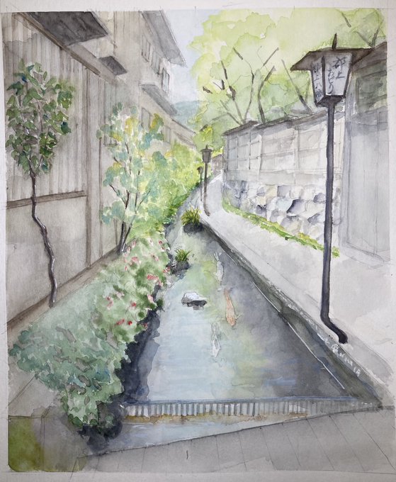 ⭐️今日の一枚 昨日 孫と遊んで来た各務原河川環境楽園を写メからちゃちゃっと描きました。 SMサイズの早描きは、楽しいです👍🏻 左手前の黄色い花は、菜の花です😅(説明しないと分からない…💦💦) vifArt SM+ホルベイン透明水彩 #透明水彩 #風景画 #landscape #早描き #アナログ #各務原河川環境楽園