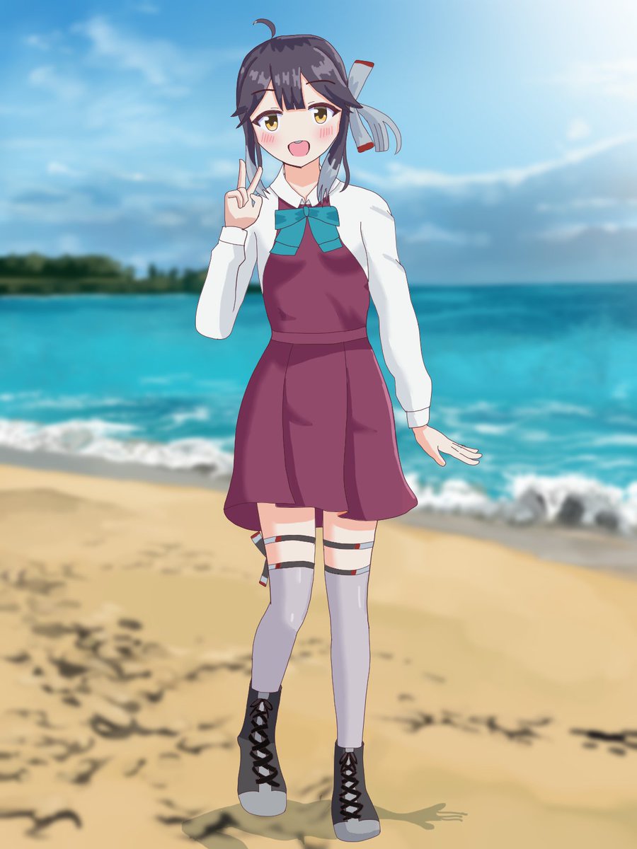 早波ちゃんと一緒に海に来ました!の絵 早波ちゃん進水日おめでとう!お姉ちゃん好きなところとか性格とかとってもかわいいと思います! #艦これ版深夜の真剣お絵描き60分一本勝負 #艦これ版真剣お絵描き60分一本勝負_20211219 #艦これ #早波進水日