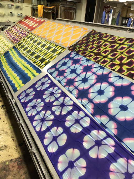 染色手ぬぐい作ってます。第4弾 たくさん並ぶと店舗みたいですね。 #専門学校 #デザイン #ファッション #テキスタイル #染織 #イラスト #絵師 #オープンキャンパス #早稲田国際ビジネスカレッジ #絵描きさんと繋がりたい