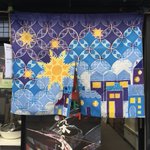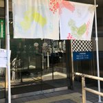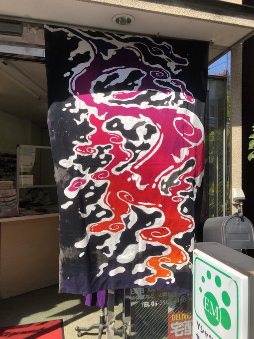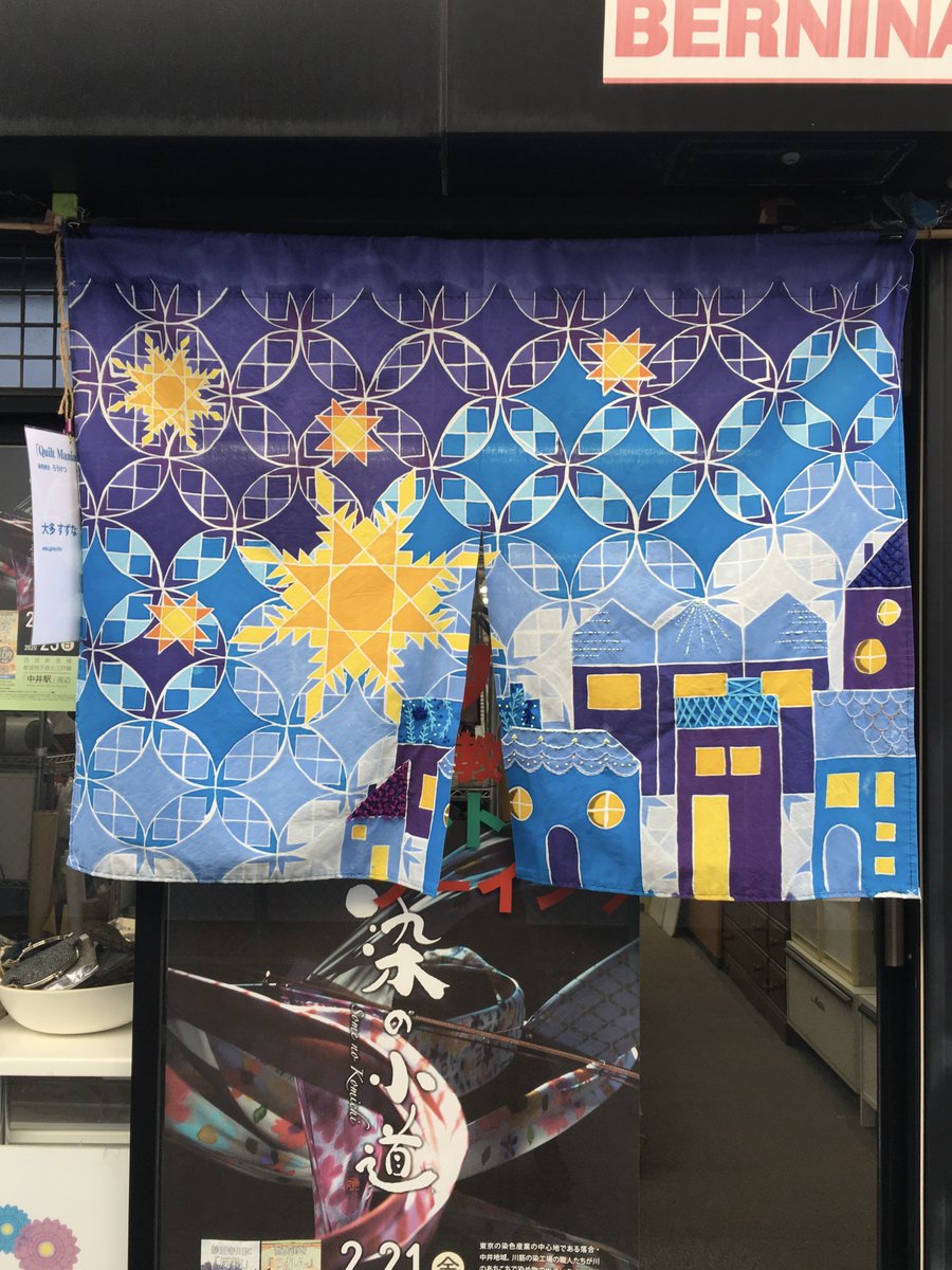 暖簾VOL8 これはステッチ工房に展示した暖簾です。 この暖簾は近くで見ると、刺繍もしてあるんです。 #専門学校 #デザイン #ファッション #テキスタイル #染織 #イラスト #絵師 #オープンキャンパス #早稲田国際ビジネスカレッジ #絵描きさんと繋がりたい