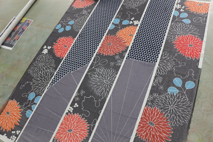 暖簾VOL18 学生が制作した暖簾で街中が華やかになります。 これは着物染色店に展示した暖簾です。 暖簾の形を着物にしてみました。 #専門学校 #デザイン #ファッション #テキスタイル #染織 #イラスト #絵師 #オープンキャンパス #早稲田国際ビジネスカレッジ #絵師さんと繋がりたい