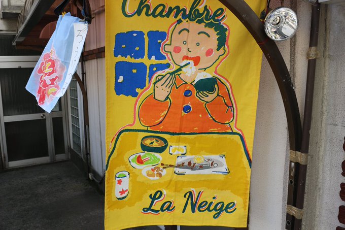 暖簾VOL2 これは飲食店に展示した暖簾です ここは昔、学生寮だったそうです。当時の学生が美味しそうに焼き魚を食べている様子をデザインしました #専門学校 #デザイン #ファッション #テキスタイル #染織 #イラスト #絵師 #オープンキャンパス #早稲田国際ビジネスカレッジ #絵描きさんと繋がりたい