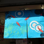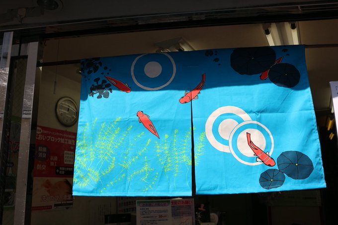 暖簾VOL5 これはクリーニング店に展示した暖簾です。店先にあった水槽の中に可愛らしい金魚がいました。 #専門学校 #デザイン #ファッション #テキスタイル #染織 #イラスト #絵師 #オープンキャンパス #早稲田国際ビジネスカレッジ #絵描きさんと繋がりたい