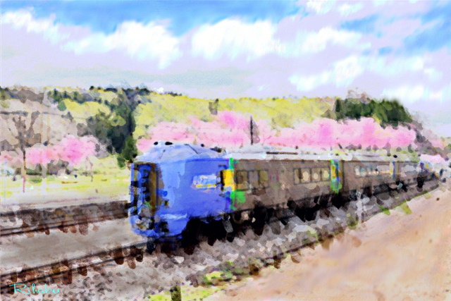 今日もおつかれさまでした 楽しい出会いに感謝を Rihakuさんご提供の 「特急宗谷 塩狩峠の桜と」です #みんなで楽しむTwitter展覧会 #風景画 #イラスト #北海道 #水彩画 #鉄道 #旭川 三浦綾子さんの小説で おなじみ「塩狩峠」 北の大地にも春ですね ホームページ→sinpusha.com