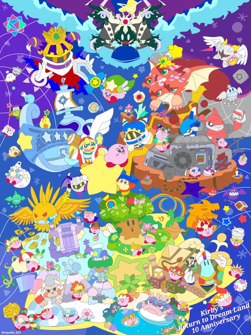 aziflyさんのカービィwiiアレンジメドレー(youtu.be/bhImrDWpGGc)にて、いくつかキャラクター描かせていただきました☺️ 壮大で素敵な音楽なのでぜひ聴いてみてください!改めて10周年おめでとうございます✨ #星のカービィWii10周年