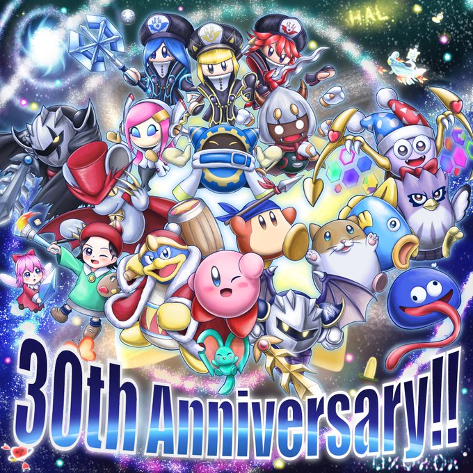 わにゃ!!!! #pixiv #ArtStudio pixiv.net/artworks/98649… カービィ誕祝絵がようやっと完成したので載せたぽよ__(っ'o'c)_ ワド30匹…🙃 データ消えたり色悩んだりで何回も塗り重ね過ぎて画質ガビガビなってしもた🙃まぁiPhone描画だからユルシテ #星のカービィ30周年 下はついった加工ver(笑) twitter.com/cos_fuuurann2n…